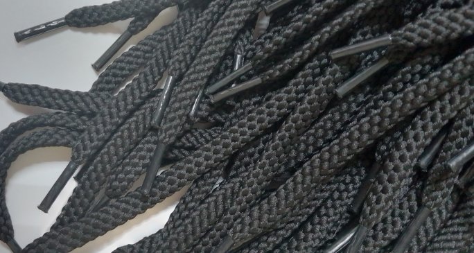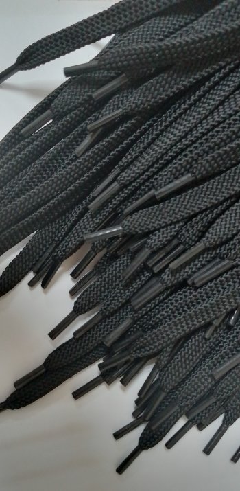 Шнурки обувные плоские без сердечника Тип 127, длина 150см. материал полиэфир, цвет черный, толщина 6мм.