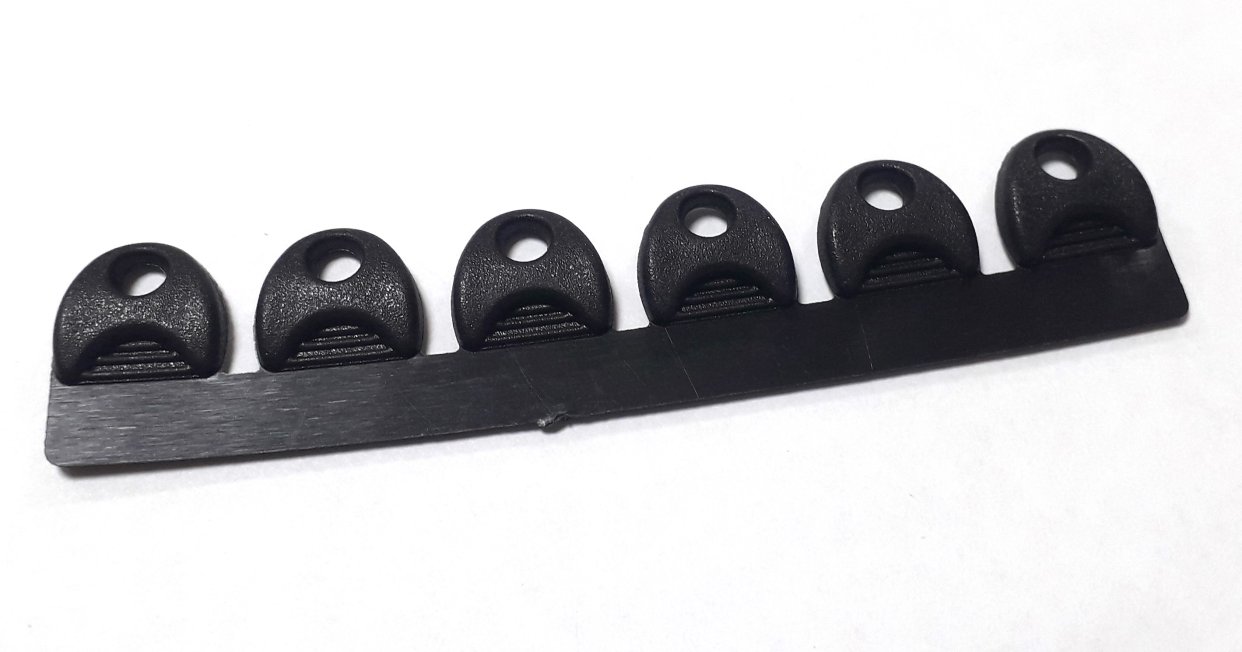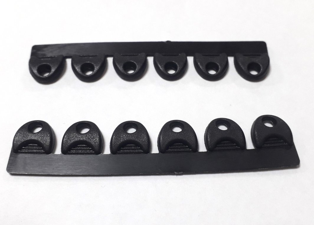 Петля пластиковая вшивная арт.083580620 цвет черная на шесть отверстий.