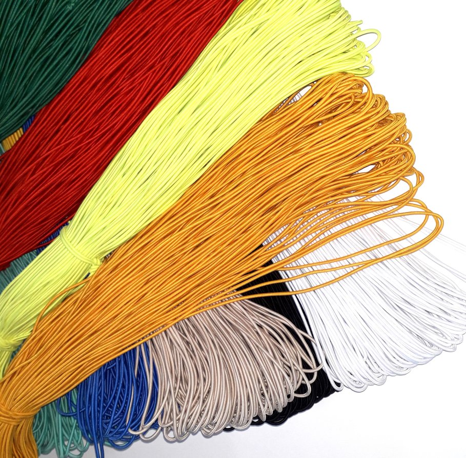 Благодаря тому, что для изготовления круглой резинки используются латексные нити и полиэфирное сырье, она обладает хорошей упругостью.