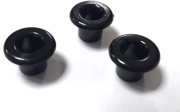 Блочка пластиковая арт.282400020 цвет черная. Внутренний диаметр 5мм. Устанавливаются специально оснасткой под пресс.