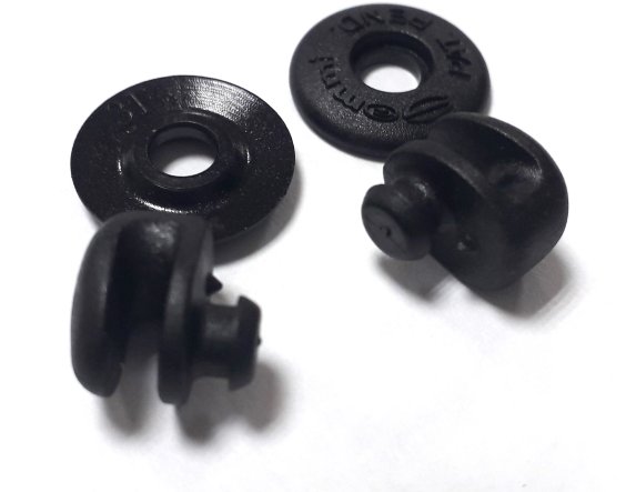 Хольнитен пластиковый арт.082500920 цвет черный, высота ножки 10мм. Предназначен для установки пластиковых петель или крючков, устанавливаются специальной оснасткой под пресс.